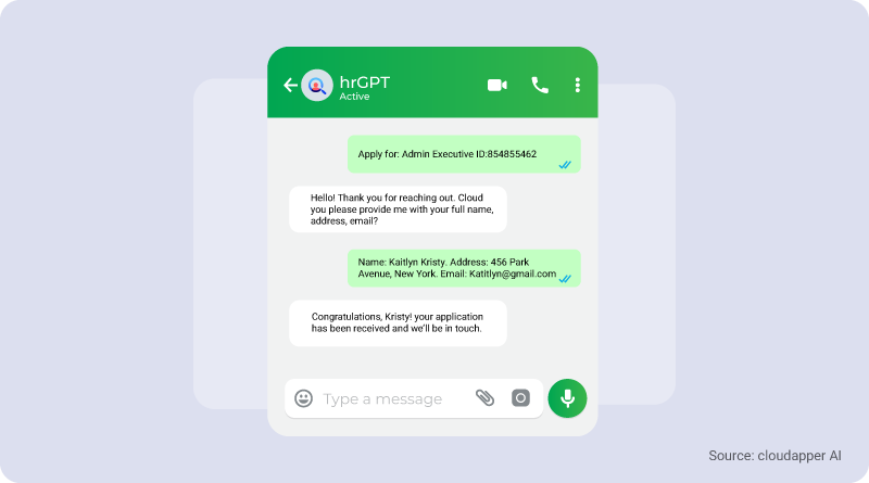 Incorporating hrGPT into your recruitment strategy can greatly improve your HR operations’ efficiency and effectiveness. Contact CloudApper today to learn more about how hrGPT might help your company.