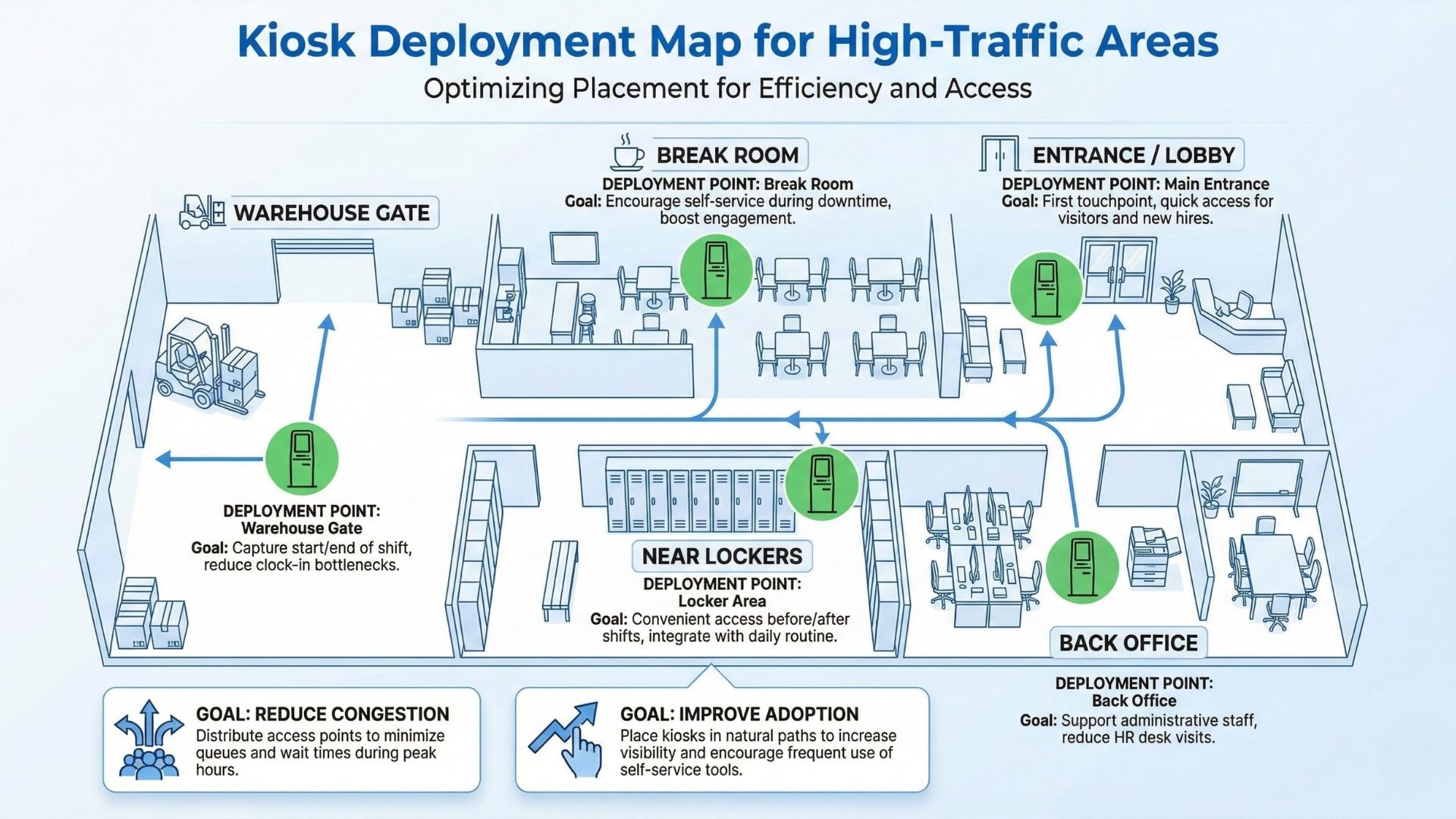 A modern employee self-service kiosk is no longer just a time clock. For deskless teams in manufacturing, retail, and logistics, it can become a Digital Hub where employees access payslips, manage PTO, confirm shifts, complete compliance steps, and get fast HR answers without needing a corporate email or personal smartphone.