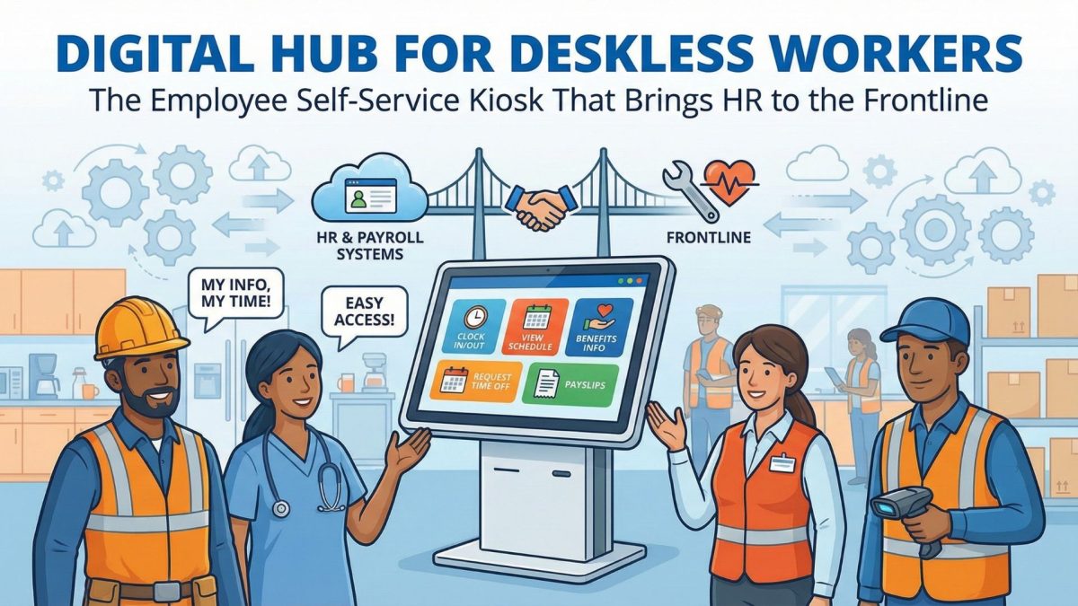 A modern employee self-service kiosk is no longer just a time clock. For deskless teams in manufacturing, retail, and logistics, it can become a Digital Hub where employees access payslips, manage PTO, confirm shifts, complete compliance steps, and get fast HR answers without needing a corporate email or personal smartphone.