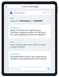 Candidates start by scanning a QR code or sending an SMS. CloudApper’s AI-powered chatbot then engages them in a natural, friendly conversation to gather key application details—no logins, no portals, and absolutely no lengthy forms.